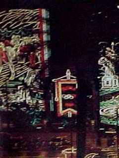 At the mirror inside the party.